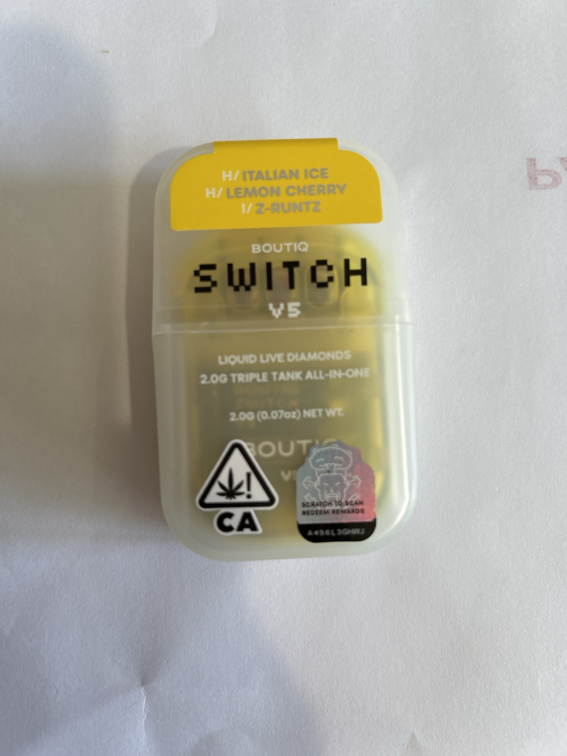 Boutique triple tank lemon Cherry 2 gram Aio Vape (Indica/Hybrid)