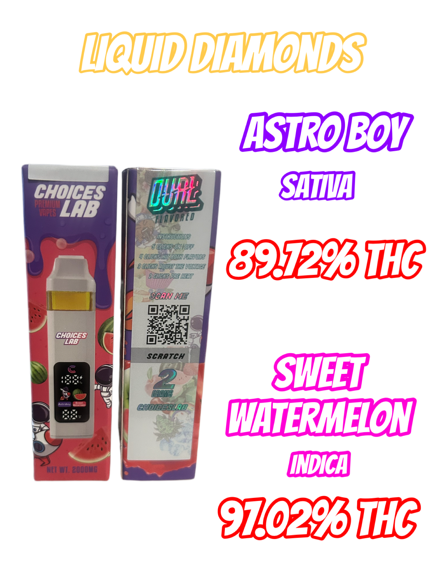 Choice Labs – Sweet Watermelon (Indica) + Astroboy (Sativa) 2 grams Liquid Diamonds